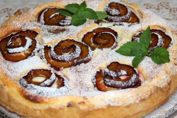 Tvarohový koláč so slivkovými ružami