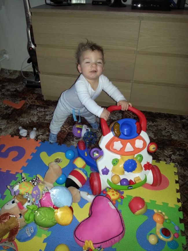 Mám syna Matyáška 15 měsíců a nejvíce si hraje s chodítkem..Tohle je zrovna fotka kdy vstal a první věc co byla tak si vzal chodítko a začal stím chodit-podle toho taky fotka vypadá.