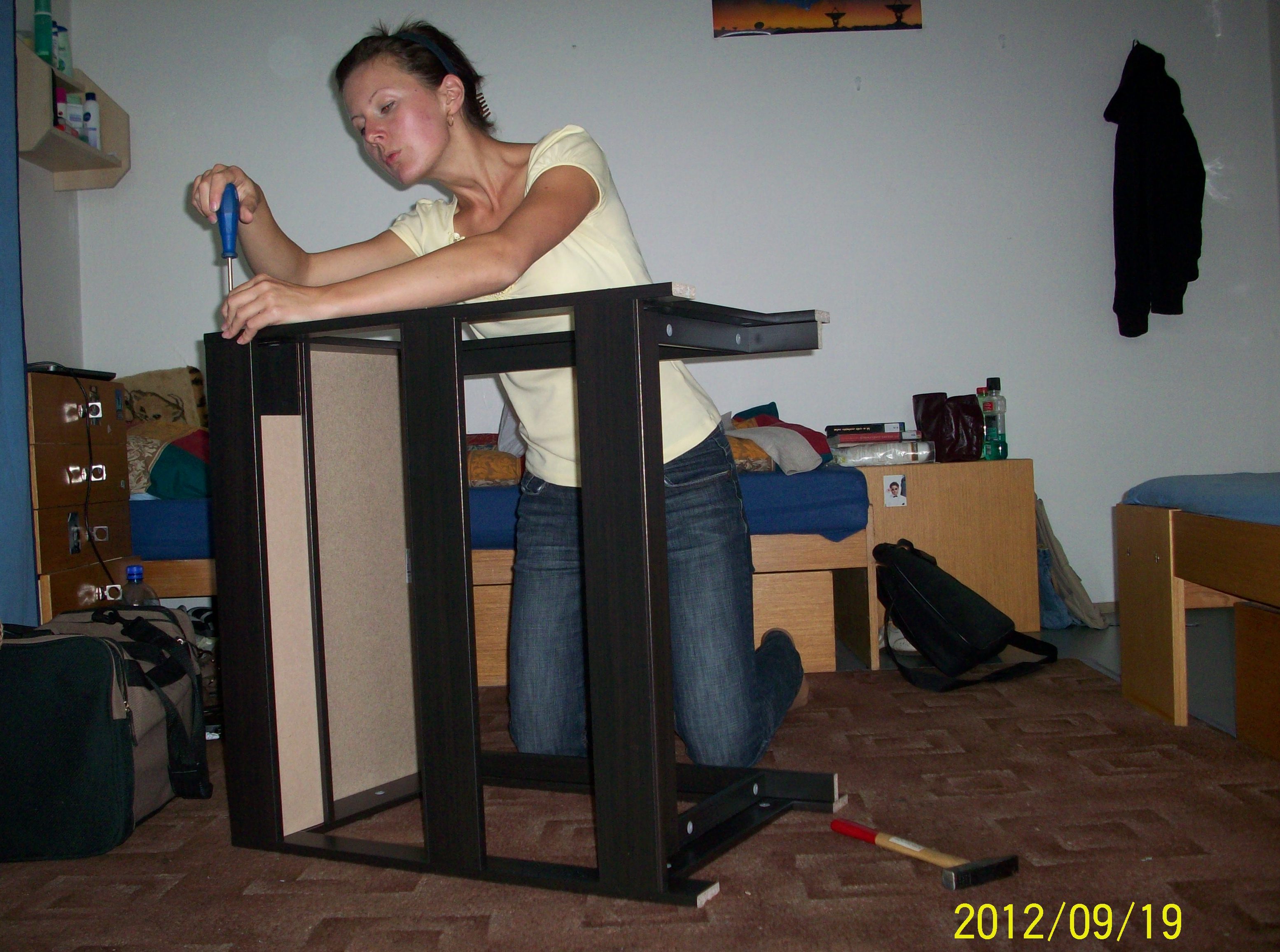 Stůl á la pracovní plocha - snídaně, studium a vzácný spánek (tj. fáze brainstorming)